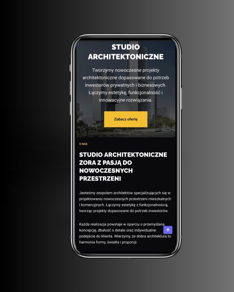 Strona internetowa dla architekta powinna być przede wszystkim minimalistyczna, estetyczna i oparta na dużych zdjęciach realizacji. Kluczowe znaczenie ma przejrzysta struktura, szybkie ładowanie oraz wersja mobilna (RWD), ponieważ wielu klientów przegląda portfolio na telefonie.